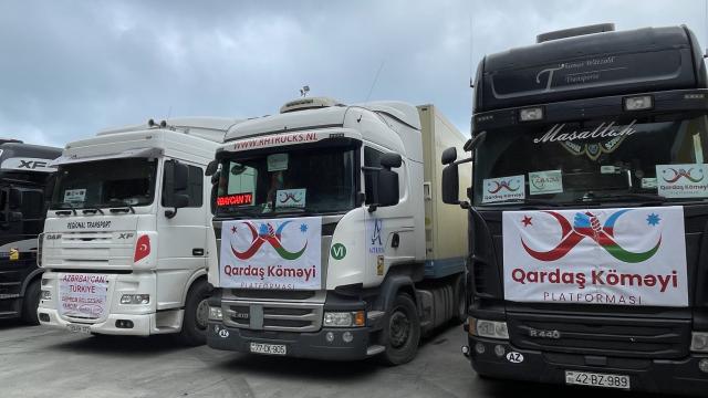 Azerbaycan ve Gürcistan'da depremzedeler için toplanan gıda ve temel yaşam malzemelerini taşıyan 80 tır, sınır kapısından geçti. Tırlar deprem bölgelerine ilerliyor.