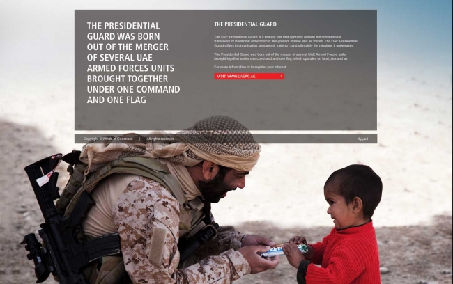 Sade bir tasarıma sahip sitedeki Başkanlık Muhafızları sekmesine tıklandığında, sırtında AP4 LR tipinde bir tüfek taşıyan Arap simalı bir asker, küçük bir Afgan çocuğuna çikolata uzatırken görülüyor. Yani ortada fazla mükemmel bir görüntü var. Ancak başka ülkelerdeki çocuklar farklı düşünüyor. Uluslararası Af Örgütü ve İnsan Hakları İzleme Örgütü de aynı görüşü paylaşıyor.
