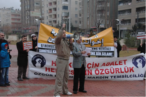 Özgür-Der Sivas Temsilciliği üyeleri Filistinli esirleri, Suriye'yi ve Türkiye'de yaşanan son süreci irdeleyen bir basın açıklaması yaptılar.