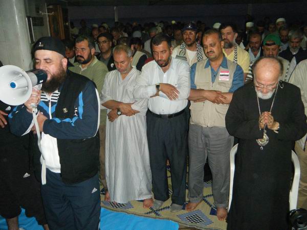 Şu anda Kıbrıs – Gazze etabında bulunan ve bugün ikindi vakti TSİ 15:30'da Gazze'ye doğru hareket eden yardım gemilerinde biribirinden ilginç ve ibretâmiz hadiseler yaşanmaya devam ediyor. "Mavi Marmara" gemisinde bulunan Papaz Hilarion Capueci, cemaatle birlikte akşam namazı kıldı. Vatikan'da Bulunan Sürgündeki Qûdüs Başpiskoposu Hilarion Capueci, gemide cemaatle kılınan akşam namazında cemaatle birlikte saf tuttu. Vatikan'da ikamet eden, Filistin asıllı, Qûdüs Başpiskoposluğu yapmış, 4 yıl İsrail hapishanelerinde yatmış olan Papaz Capueci, namazda imâmın hemen arkasındaki ilk safta yerini aldı. 88 yaşında olan ve ayakta durmakta bile zorlanan Capueci'nin buna rağmen böyle bir eylem ortaya koyması, gemideki "onur ve izzet yolcularının" büyük takdir ve teveccühünü kazandı. Yaşlı hayli ilerlemiş olan Capueci'ye her rükû ve secdeye gidişinde sağında ve solunda bulunan kişiler, düşmemesi için bir eliyle tutarak yardım ettiler.