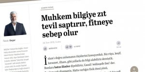 Faruk Beşer, Yeni Şafak’ta devam ettiği usulu’d-din konulu yazılarının bu bölümünde tevilde ölçü meselesini değerlendirerek ölçü gözetmeyen tevilin kaçınılmaz olarak Batıniliğe götüreceğini söylemiş.