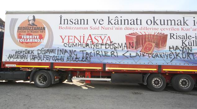 Yeni Asya gazetesi organizasyonunun Risâle-i Nur Külliyatı'nın tanıtılmasını amaçlayan "Bediüzzaman Tanıtım ve Hizmet Tırı" geceleyin konakladığı Erzurum'da saldırıya uğradı. Bir grubun tırın üstüne "Cumhuriyet Düşmanı", "Atatürk Düşmanı", "İnanç Tacirleri", "Amerikan uşağı Fetoşun Köleleri", "Hayin Kürt" ve "Laik Türkiye" şeklinde yazılar yazmak suretiyle gerçekleşen saldırıyla ilgili emniyet güçlerinin tahkikat ve soruşturma başlattığı bildirildi.