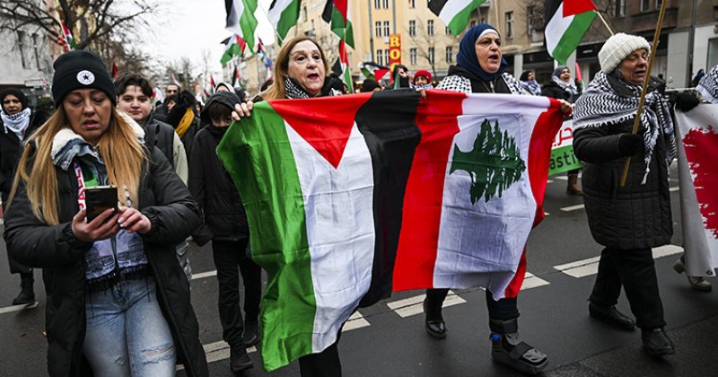 Almanya’nın başkenti Berlin’de işgalci İsrail’in Filistin’e yönelik saldırılarını protesto etmek için yürüyüş düzenlendi.