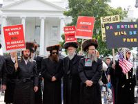ABD’nin başkenti Washington’da Beyaz Saray önünde toplanan, aralarında siyonizm karşıtı Yahudilerin de bulunduğu bir grup, İsrail’in uyguladığı şiddet politikalarını protesto etti.