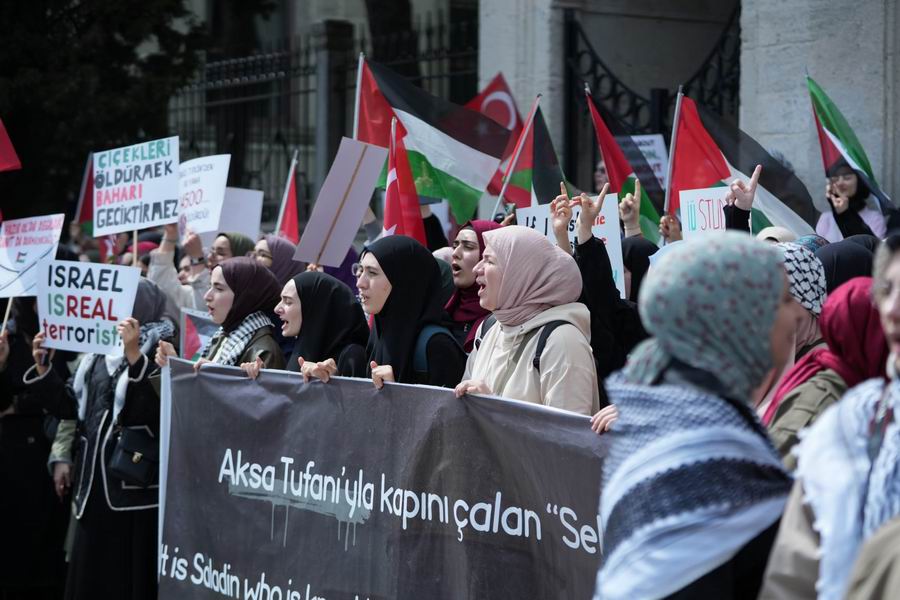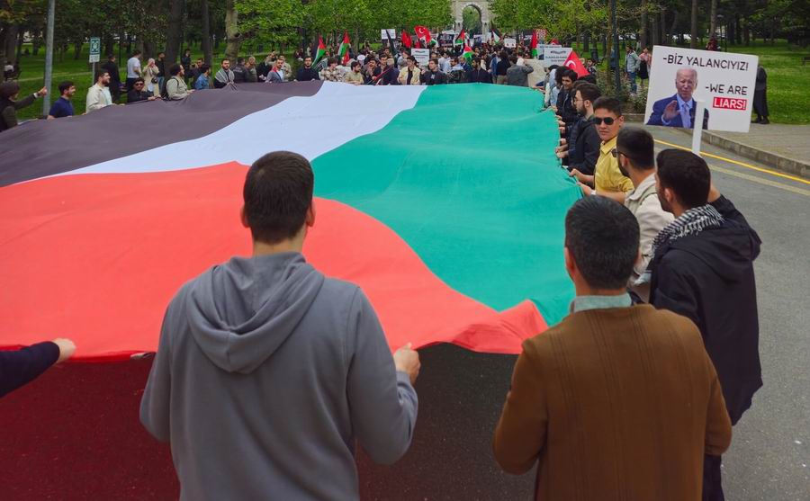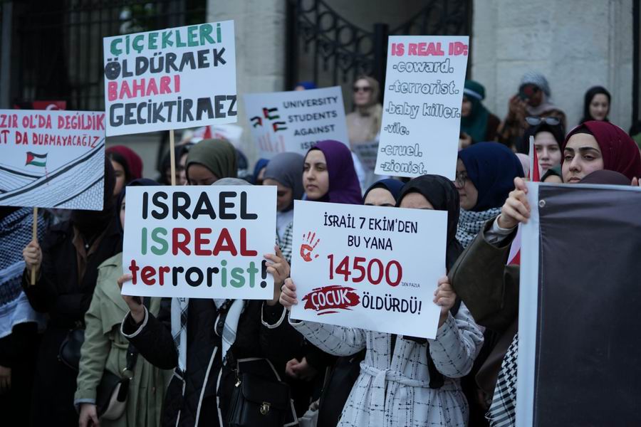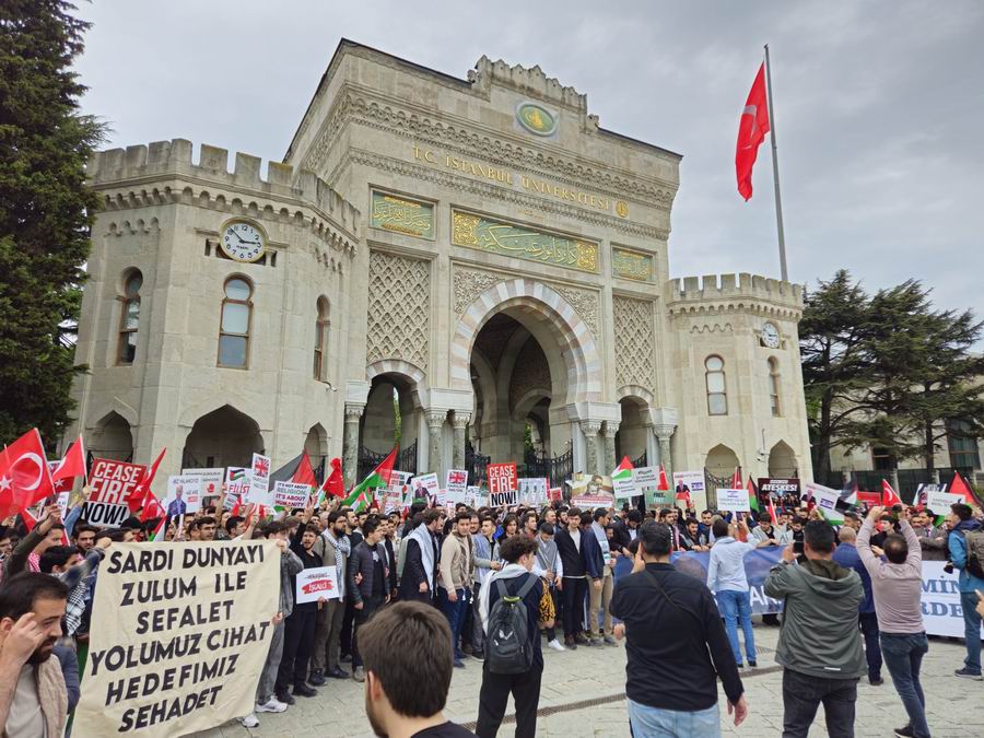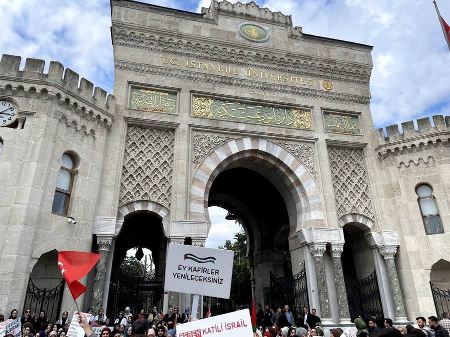 İstanbul Üniversitesindeki öğrenci kulüplerinin çağrısı ile merkez kampüste toplanan yüzlerce öğrenci, Gazze ile dayanışma eylemi gerçekleştirdi.