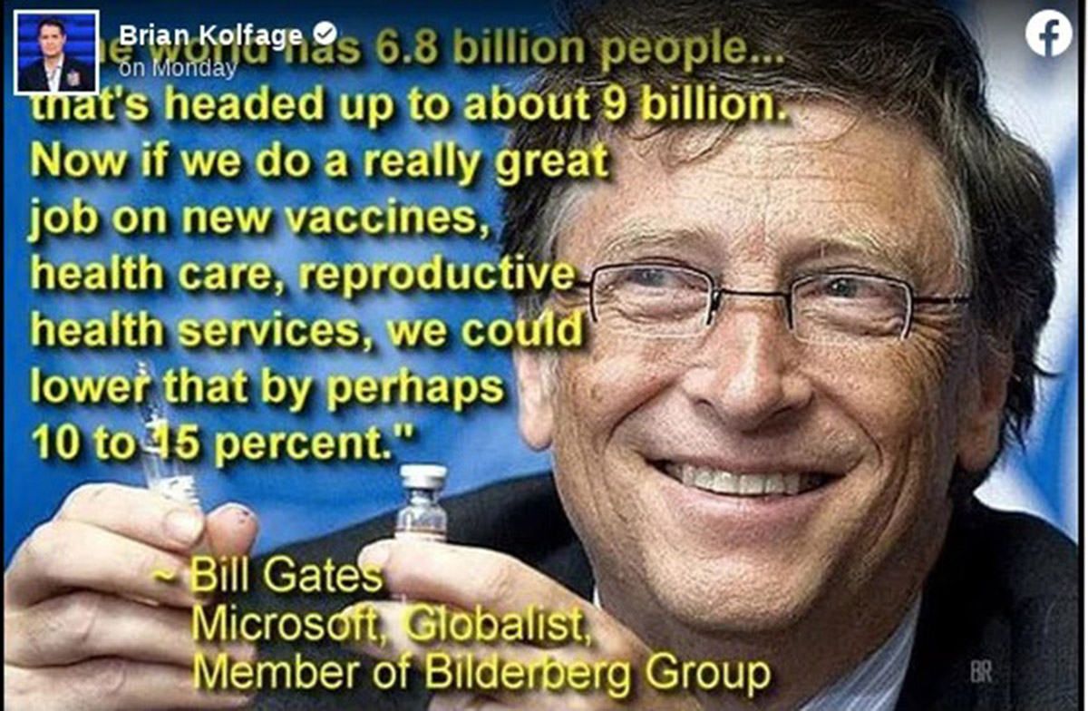 Her konuşmasından birer cümle birleştirilip, bazı yerleri yavaşlatılarak korkunç seslere dönüştürülünce karşımıza insanlık neslini bitirmek için aşı işlerinin peşinden koşan korkunç bir Bill Gates profili çıkıyor.