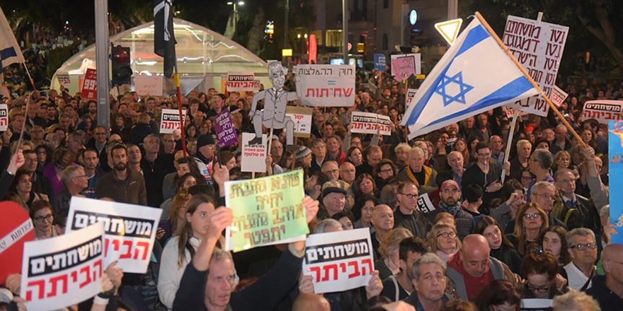 Tel Aviv’de toplanan binlerce İsrailli, hakkında yolsuzluk soruşturması açılan işgalci Başbakan Binyamin Netanyahu’yu protesto etti.