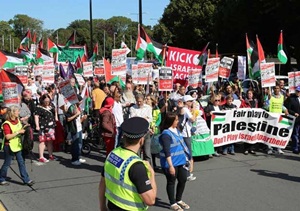2016 Avrupa Futbol Şampiyonası elemeleri kapsamında Galler'in başkenti Cardiff'te, Galler ile karşılaşacak İsrail, protesto edildi.