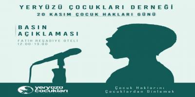 20 Kasım tarihinde Biz Yeryüzü Çocukları Derneği, Dünya Çocuk Hakları Günü sebebiyle basın açıklaması yapacak.