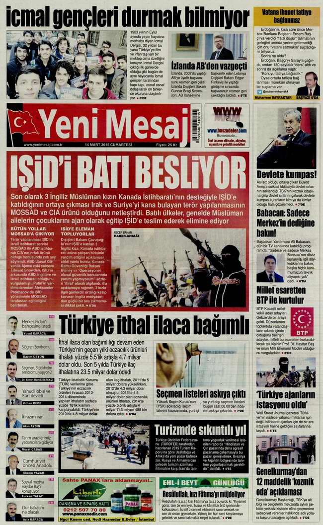 Bugünün Gazete Manşetleri - 14 Mart 2015