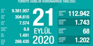 Türkiye Günlük Koronavirüs Tablosu, "covid19.saglik.gov.tr" adresinden paylaşıldı. Güncel verilere göre, son 24 saatte 97 bin 416 Kovid-19 testi yapıldı, 1538 kişiye hastalık tanısı konuldu, 68 kişi hayatını kaybetti.