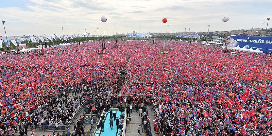 Cumhurbaşkanı Erdoğan, seçime 6 gün kaldığını anımsatarak, "Buradan, bu muhteşem meydandan İstanbul'un tüm ilçelerindeki, mahallelerindeki kardeşlerime en kalbi sevgilerimi yolluyorum. Bugün bayramın 3. günü. Bayramınızı tekrar tekrar tebrik ediyorum. Ramazan Bayramı'nın ilhamıyla, onun bize verdiği aşkla 6 günü evelallah başarılı bir şekilde sürdüreceğiz. Sonunda da Rabbimden niyazımız odur ki Ya Rab, inşallah bu Cumhurbaşkanlığı Yönetim Sistemi'ni AK Parti ile bizlerle güçlendir." dedi.