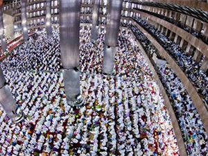 Ramazan ayının son gününde Cakarta'daki İstiklal Camii'nde yaklaşık 60 bin kişi teheccüd namazı kıldı.