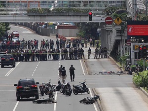 Endonezya'nın başkenti Cakarta'da düzenlenen bombalı saldırılarda 1'i polis 4 kişi yaşamını yitirdi. Patlamada 3 canlı bomba eylemcisi hayatını kaybetti.