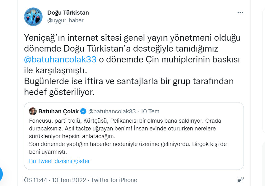 Çakma hesaplarla Doğu Türkistan davası istismar edilmeye çalışılıyor
