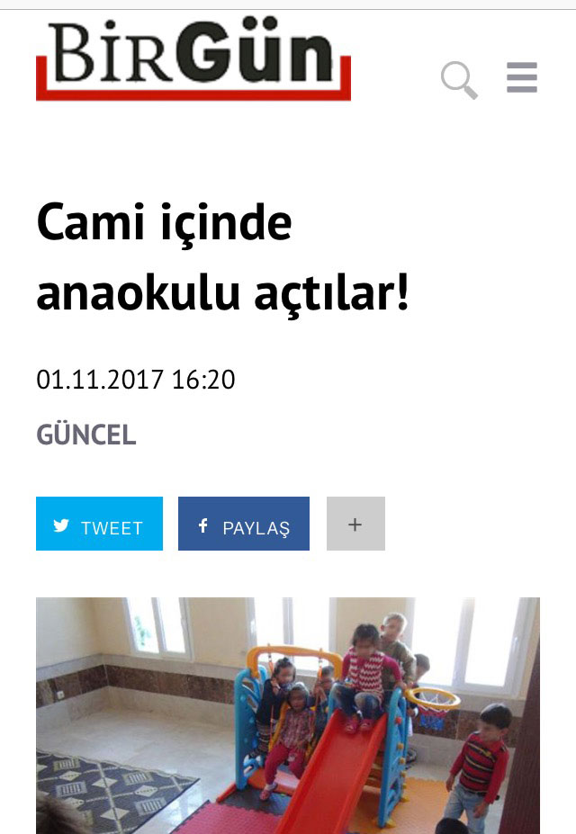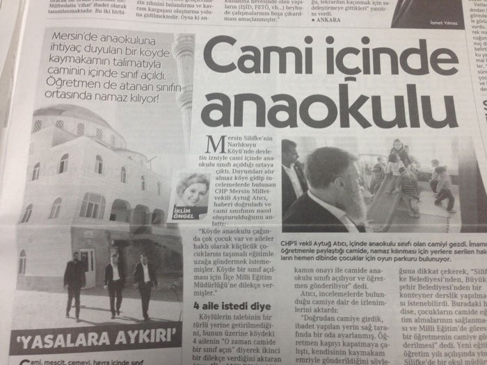 Cumhuriyet Gazetesi'nin "Cami İçinde Anaokulu" başlıklı haberinden: