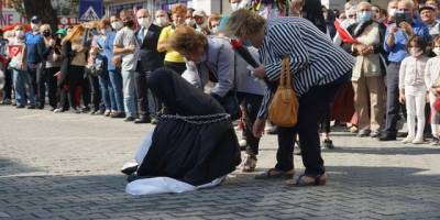 Balıkesir'in Edremit ilçesinin düşman işgalinden kurtuluşunun 99. yıl dönümü kutlaması sırasında çarşaf içerisindeki bir kadının zincire vurulması tepki çekti. Valilik soruşturma başlattı, kaymakam Turgay Ünsal ise merkeze çekildi.
