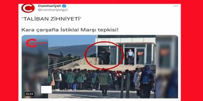Amasya’nın Merzifon ilçesinde Şehit Ahmet Özsoy Anadolu Kız İmam Hatip Lisesi’nde İstiklal Marşı’nı çarşaflı bir öğretmen okutunca Cumhuriyet rahatsız oldu.