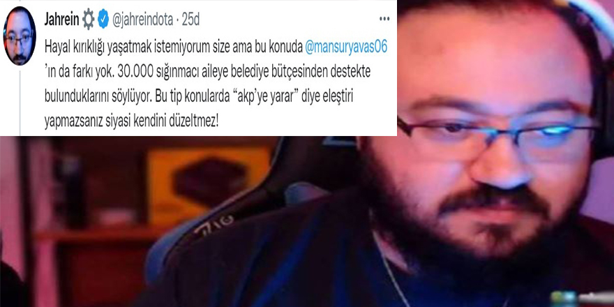 Sosyal medyada oynadığı oyunlar üzerinden fenomen olduktan sonra CHP’den itibar gören Jahrein olarak tanınan Ahmet Sonuç, sosyal medya paylaşımlarında ‘CHP’li belediyelerin sığınmacılara destek vermesini kabul edilemez’ buldu.