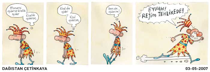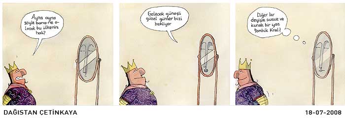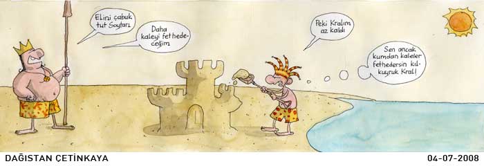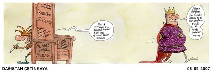 Lise yıllarından itibaren çizgi dünyası ile yakından ilişkili olan ve bu nedenle askeri okuldan firar etmek zorunda kalan Dağıstan Çetinkaya’nın Kral ve Soytarı karikatürlerini ya da çizgi bantlarını, hadi ikisini birleştirelim çizgi bant karikatürlerini ne zaman bakma gereği duysam hep aklıma Orhan Koloğlu’nun “İslam’ın yapısında karikatür çizimi yok (...) Eskiden dinci gruplar karikatüre önem vermezlerdi, yayınlarında karikatür kullanmazlardı, şimdi hepsi kullanıyor.” yargıları gelir. Bu şunun için önemli kültürel tarihimize baktığımızda sanat sahasında birkaç alan dışında özellikle de modern sanatlar konusunda oldukça cılız bir ilgimiz ve bundan kaynaklanan cılız bir üretimimiz söz konusu. Bunu toplumsal araştırmalarımızın kültüre değgin boyutu kolaylıkla kanıtlayacaktır.