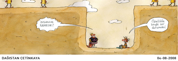 Karikatür tebessüm ettirirken düşündürmeli. Ama bazen güldürü öğesi olmayan ve kara kara düşündüren gerçekliklerin karikatürleri de vardır ki gerçekleri söylemenin anlamı kalmadığında en güçlü silahın mizah olduğunu bir kez daha anlarsınız.