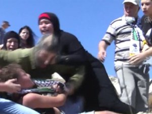 Filistinli bir annenin çocuğunu gözaltına almaya çalışan İsrail askerine karşı direnişi ise kameralara yansıdı.