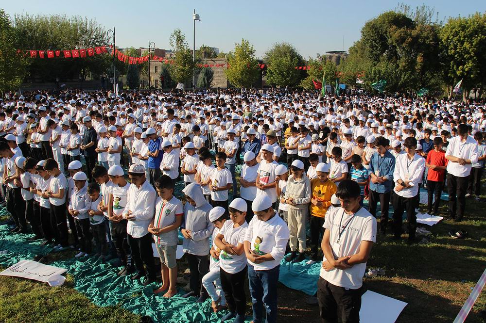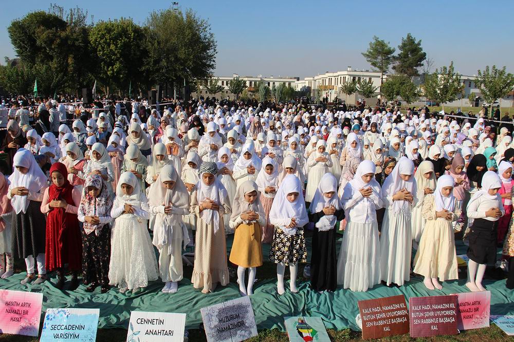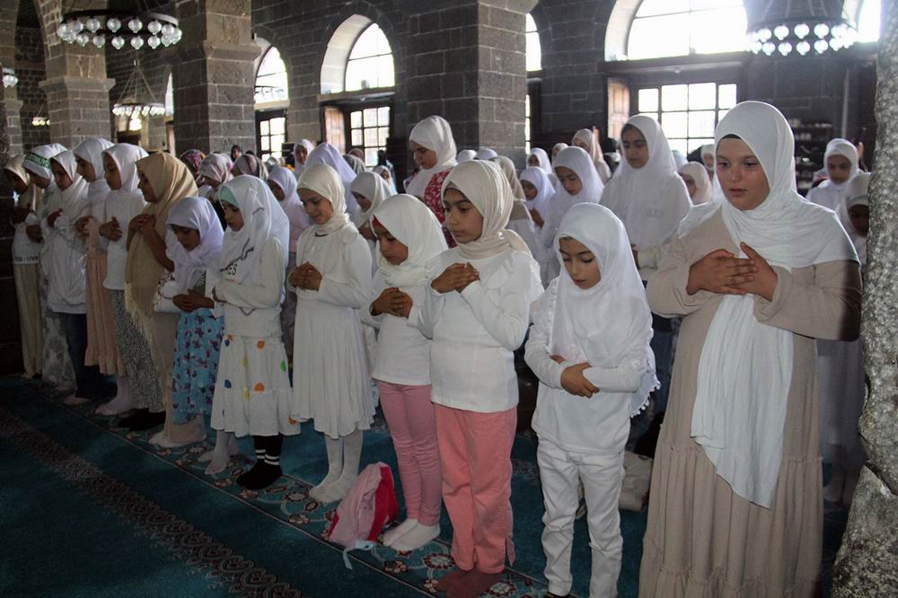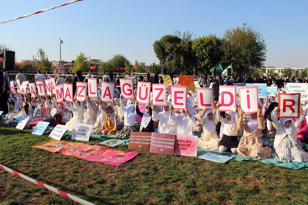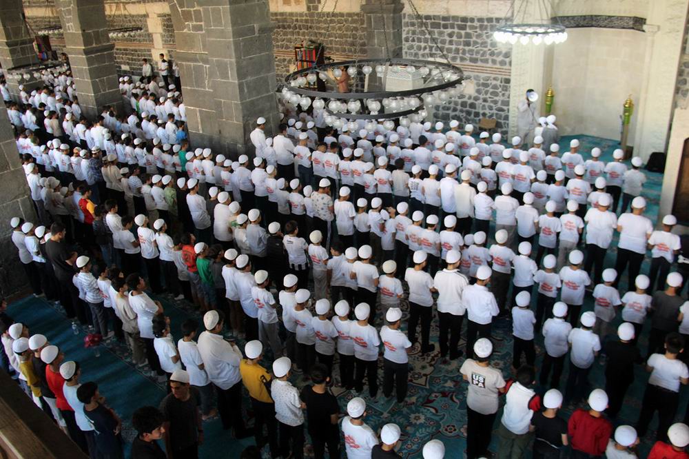 Kur'an Nesli Platformu tarafından düzenlenen "Hayat Namazla Güzeldir" final etkinliği öncesinde Diyarbakır'ın tarihi Ulu Camiinde bir araya gele çocuklar, kıldıkları şükür namazı sonrası programın düzenlendiği Kurşunlu Camiine yürüyüş gerçekleştirdi.