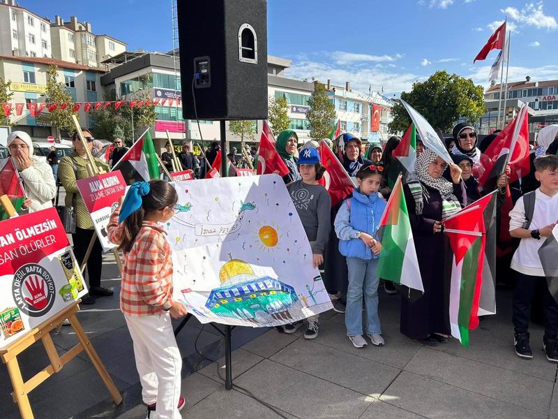Çorum'da işgalci İsrail’in katliamlarını protesto eden kadınlar ve çocuklar, AB ve uluslararası toplumun çifte standart politikalarını eleştirdiler.