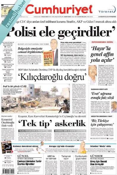 Cumhuriyet gazetesinin arşivi 25 Ağustos'tan 27 Ağustos'a atlıyor. Arada 26 Ağustos 2010 tarihli nüsha yok. Peki, bu sansürün nedeni ne?