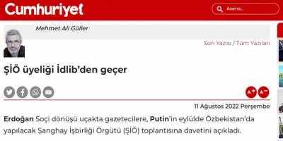 Türkiye’nin Putin tarafından Şangay İşbirliği Örgütüne davet edilmesi Cumhuriyet yazarı Mehmet Ali Güller’i İdlib’de Esed lehine çözüm heyecanına gark etmiş!