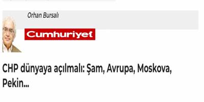 Cumhuriyet gazetesi yazarı ve Kemal Kılıçdaroğlu'nun ABD ziyaretinde yanında bulunan gazeteci Orhan Bursalı: "CHP dünyaya açılmalı: Şam, Avrupa, Moskova, Pekin" diye yazdı.