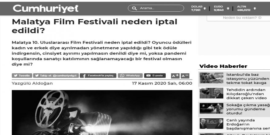 Cumhuriyet, Malatya Film Festivali’nin neden iptal edildiğini anlamamış