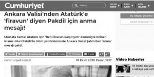 Cumhuriyet, Ankara Valisi'nin vefat yıldönümünde Nuri Pakdil'i anmasını kabullenemedi.