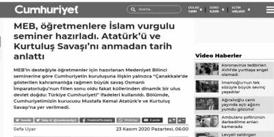 Cumhuriyet haberinde MEB'in desteklediği bir projede İslam’a fazla yer verilip Atatürk’ten söz edilmemesine tepki gösteriyor.