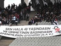 Beşiktaşlı taraftarlar Fenerbahçe derbisinde "Kutlu Doğum Haftası" nedeniyle Peygamberimizi (s) anan bir pankart açtı.