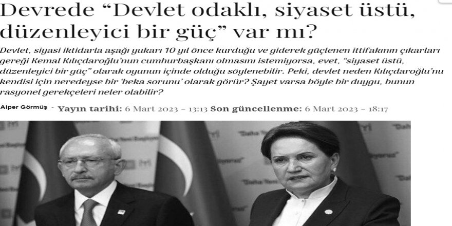 Halil Berktay kendisiyle aynı mecrada yazan bazı isimlerin de Akşener'in altılı masadan ayrılma sürecini "devlet" merkezli izah etme girişimine itirazlarını dile getiriyor.