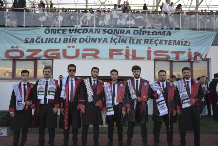 Dicle Üniversitesi Tıp Fakültesi mezuniyetinde vicdanın ve Filistin’in sesi yükseldi