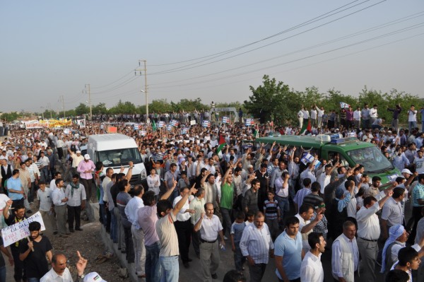 İstasyon Meydanını dolduran onbinler, Siyonistler tarafından şehit edilen Ali Haydar Bengi kardeşimizi, Yeni Köy mezarlığına kadar yaptıkları yürüyüş ile Rabbimize uğurladı.