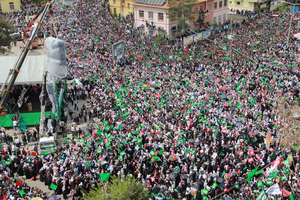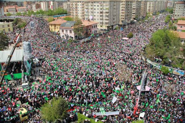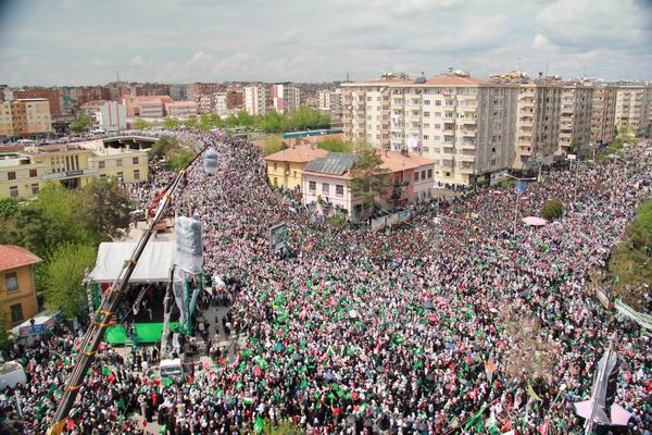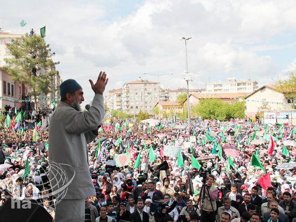 Tekruri sözlerini şöyle sürdürdü: "Sizler Resulullah'ı (sav) nasıl seviyorsanız, o da sizi öyle seviyor. Çünkü sizler onun yolundan, arkasından gidiyorsunuz. Ömer'in, Osman'ın yolunu takip ediyorsunuz. Allah sizi mübarek kılsın ey Diyarbakırlılar… Aslında Diyarbakırlıları yücelten sizlersiniz, Diyarbakır'ı yücelten bu topluluktur. Ey peygamber Sevdalıları, ben sabahtan beri size bakıyorum ve size baktıkça çok duygulanıyorum. Sizler bana güven veriyorsunuz, inşallah sizinle beraber yeniden Filistin'i özgürleştireceğiz. Kudüs sizi bekliyor. Düşmanlarınıza rağmen sizler Resulullah'ın arkasından gittiniz" diye konuştu.
