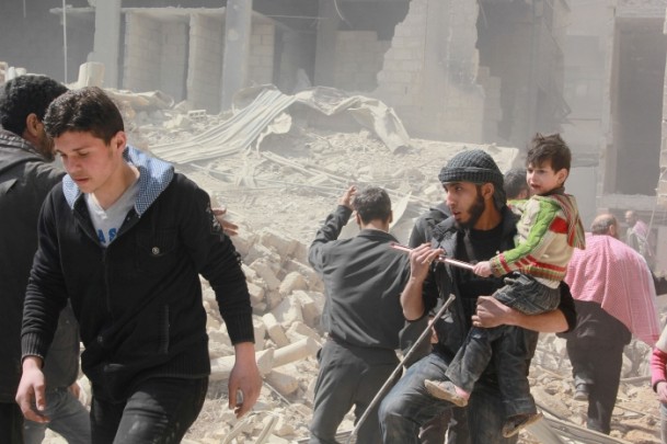 Savaş uçaklarının ilçeyi "5 vakum bombasıyla saldırdığına" değinen Bustani, "Rejim güçleri, Suriye'de devrimin yıl dönümünde Duma'ya füze ve roket yağdırdı. İki günden bu yana ilçede katliamlar gerçekleştiriyor." dedi.