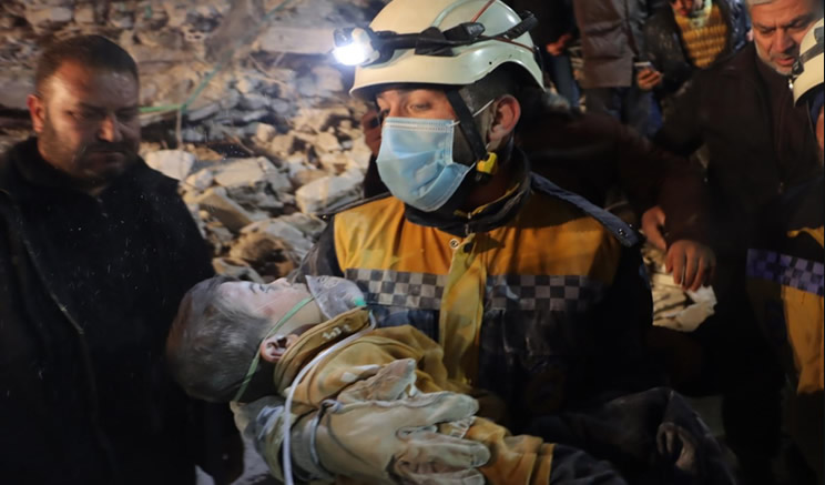 Türkiye'ye yardım için küresel bir seferberlik hali olsa da Suriye'nin neredeyse tamamen terk edilmesi söz konusu. Beyaz Miğferler, bölgedeki tek yerel kurtarma görevlileridir, ancak hava saldırılarına cevap vermek için eğitilmiş 2.500 kişilik gönüllü bir güçten ibarettir. (Neyse ki son birkaç gün içinde bu hava saldırıları durmuştu.) Depremden sonraki ilk üç günde, çoğu çıplak elleriyle çalışan Beyaz Miğferler personeli, her saat başı bir insan kurtardı, ancak dördüncü güne gelindiğinde enkazdan çıkarılanların çok azı canlı bulundu. Uluslararası toplum çok geç kalmıştı.