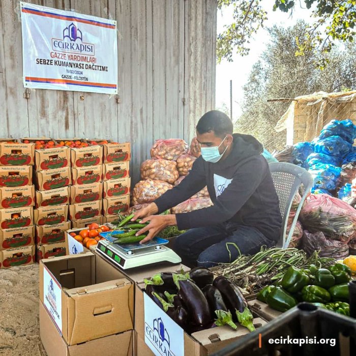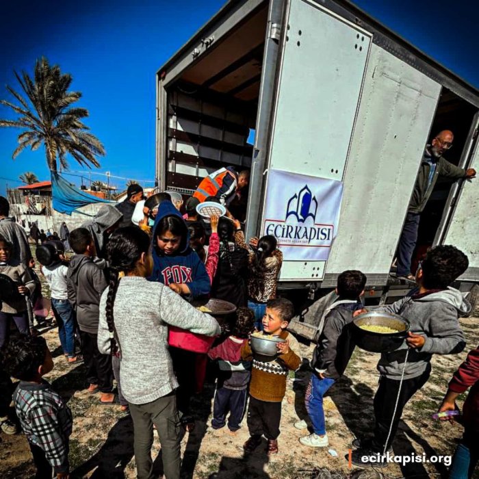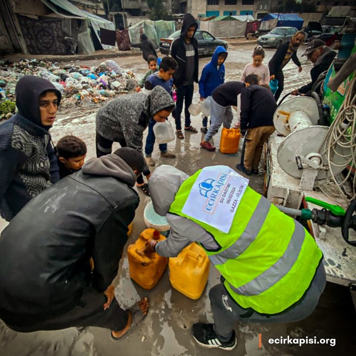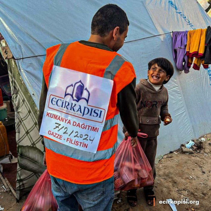 Derneğin X hesabından yapılan konuyla alakalı açıklamada “7 Ekim’den bu yana İsrail barbarlığına direnen Gazze/Refah’da yardım çalışması başlatan Ecir Kapısı Yardım Derneği, kısa sürede 50 ton su, 2500 kişiye sıcak yemek, 800 aileye kumanya ve ilaç dağıtımı yaptı.” denildi.
