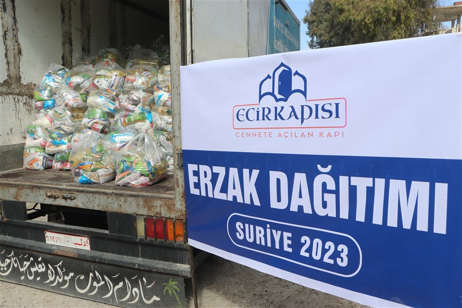 Türkiye’deki deprem bölgelerinde yardım dağıtımında bulunan Ecir Kapısı, depremin ağır şekilde etkilediği İdlib’i de unutmadı.