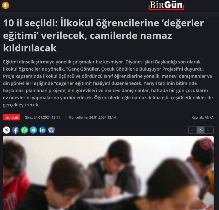 Sol-Kemalist çevreler sık sık İslami kuruluşların okullara yönelik çalışmalarını hedef gösteriyorlar. Diyanet de okullarda sorumluluk alarak öğrencilerin gelişimlerine katkı sunmaya çalıştığı için hedef tahtasına oturtulmuş durumda.