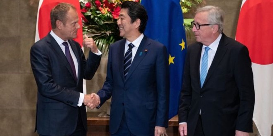 AB Konseyi Başkanı Donald Tusk ve AB Komisyonu Başkanı Jean-Claude Juncker ile Japonya Başbakanı Şinzo Abe tarafından Tokyo’da dünyanın en büyük serbest ticaret anlaşmasına imza atıldığı bildirildi.