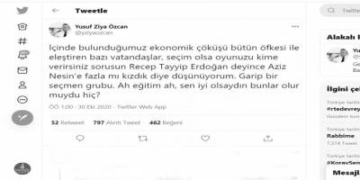 Gelecek Partisi Eğitim Politikaları Başkanı Yusuf Ziya Özcan’ın, Aziz Nesin’den ilhamla(!) yaptığı paylaşım sosyal medyada epey tepki topladı.