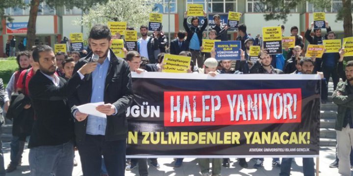 Erzurum Atatürk Üniversitesi kampüsü Mediko önünde bir araya gelen Atatürk Üniversiteli İslami gençlik yapılanması son dönemlerde yoğun bir saldırıya maruz kalan Suriye’nin Halep şehrine dönük katliamları protesto etti.