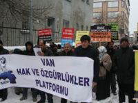 Van'da Sanat Sokağı'nda toplanan VAHÖP üyeleri Suriye İntifadasına destek için bir eylem yaptı.
