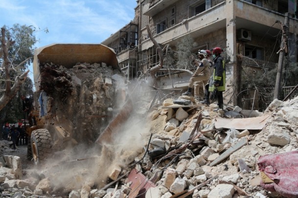 Saldırı bölgesinde halkın Esed yönetimine tepki gösterdiğini ifade eden Salim, bölge halkının enkaz altında kalanlara ulaşılması için sivil savunma ekiplerine yardım ettiğini anımsattı. Salim, saldırıya uğrayan binanın tamamen yıkıldığını ve enkazın caddeyi kapattığı vurgulandı.