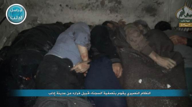 Esed güçleri, Fetih Ordusu'nun kenti ele geçirdikten sonra İdlib kent merkezinden çekilirken Merkez Cezaevi'ndeki müslüman tutsakları infaz etti.